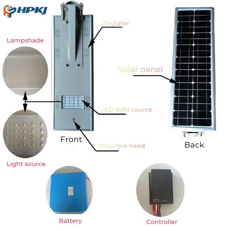 The integrated solar street light has a compact structure and compact shape. To show its advantages, its design and performance have been upgraded. For example, the batteries all use high-quality lithium iron phosphate batteries and high-conversion rate monocrystalline silicon cells. Great efforts have been made in appearance, waterproofing, and connections between parts.